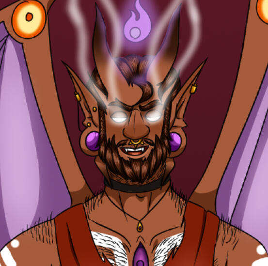 B is a demonic councillor that used to preside over many matters of Hell. Now he spends his time lazing about and making sure others are delighting in their lives. Noncommittally with Ze in Sprites.