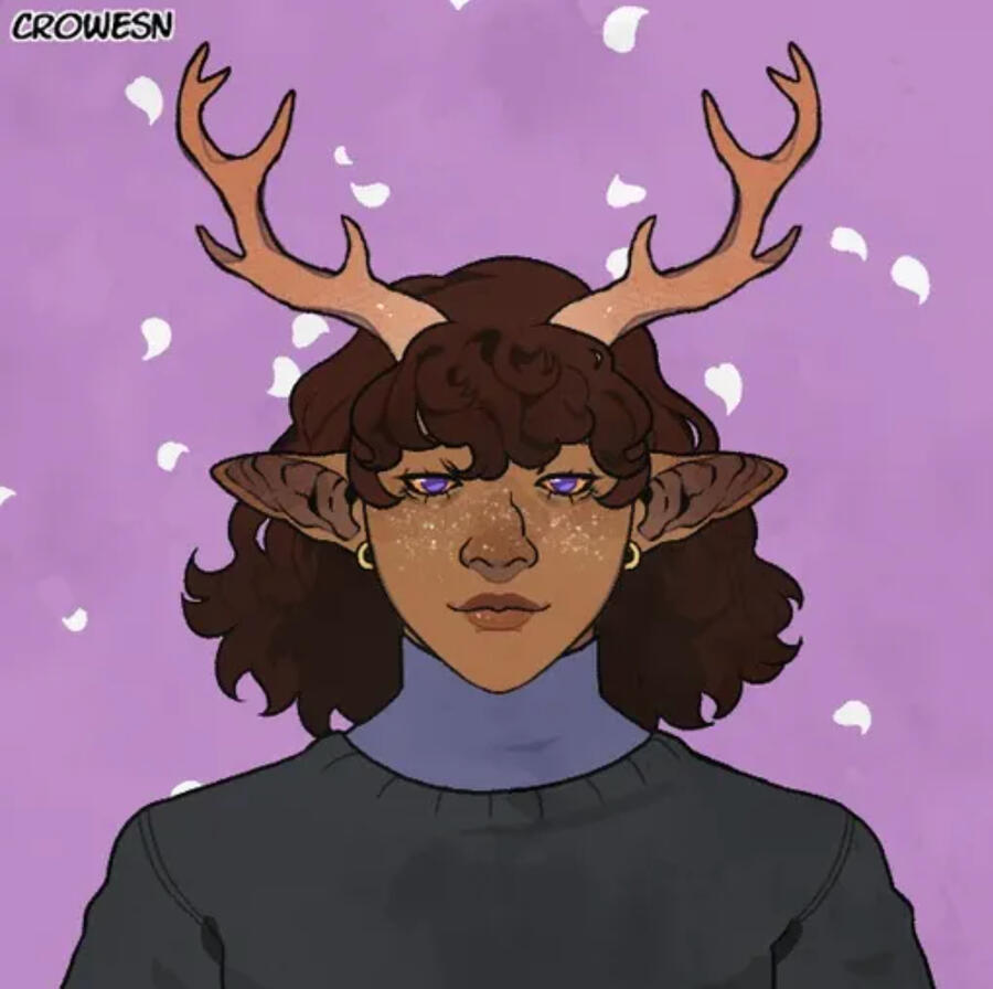 A ghost of a goat herder floating through the fields, Ebb is friendly but much better with animals rather than people. She still tends to a rowdy dragon winged boy from time to time.