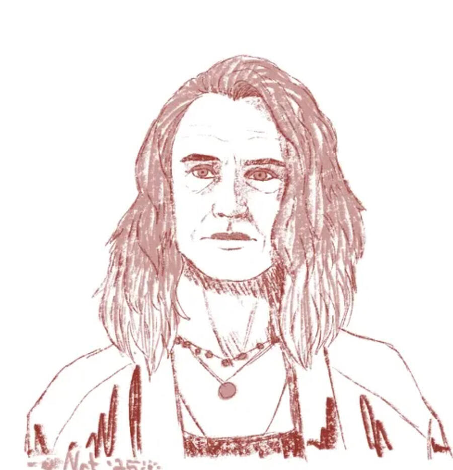 Hangman's Daughter simply goes by HMD. A weeping artist who washes her paintbrushes with her tears.