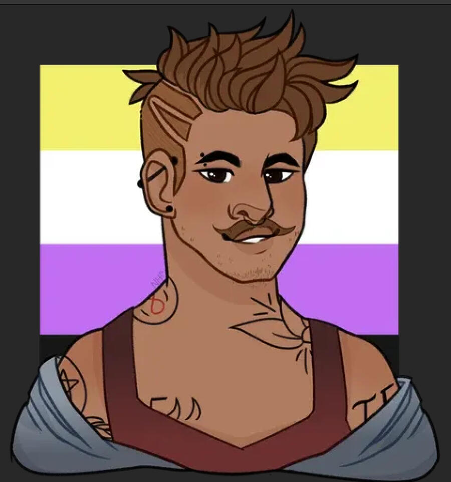 Finding their way here in early 2021, it feels like they've been here forever. Fugue is a manager for a lot of our bipolar symptoms and has ridden out some of the worst of our episodes. Big divorced dad energy (though he's happily married to Sonny.)